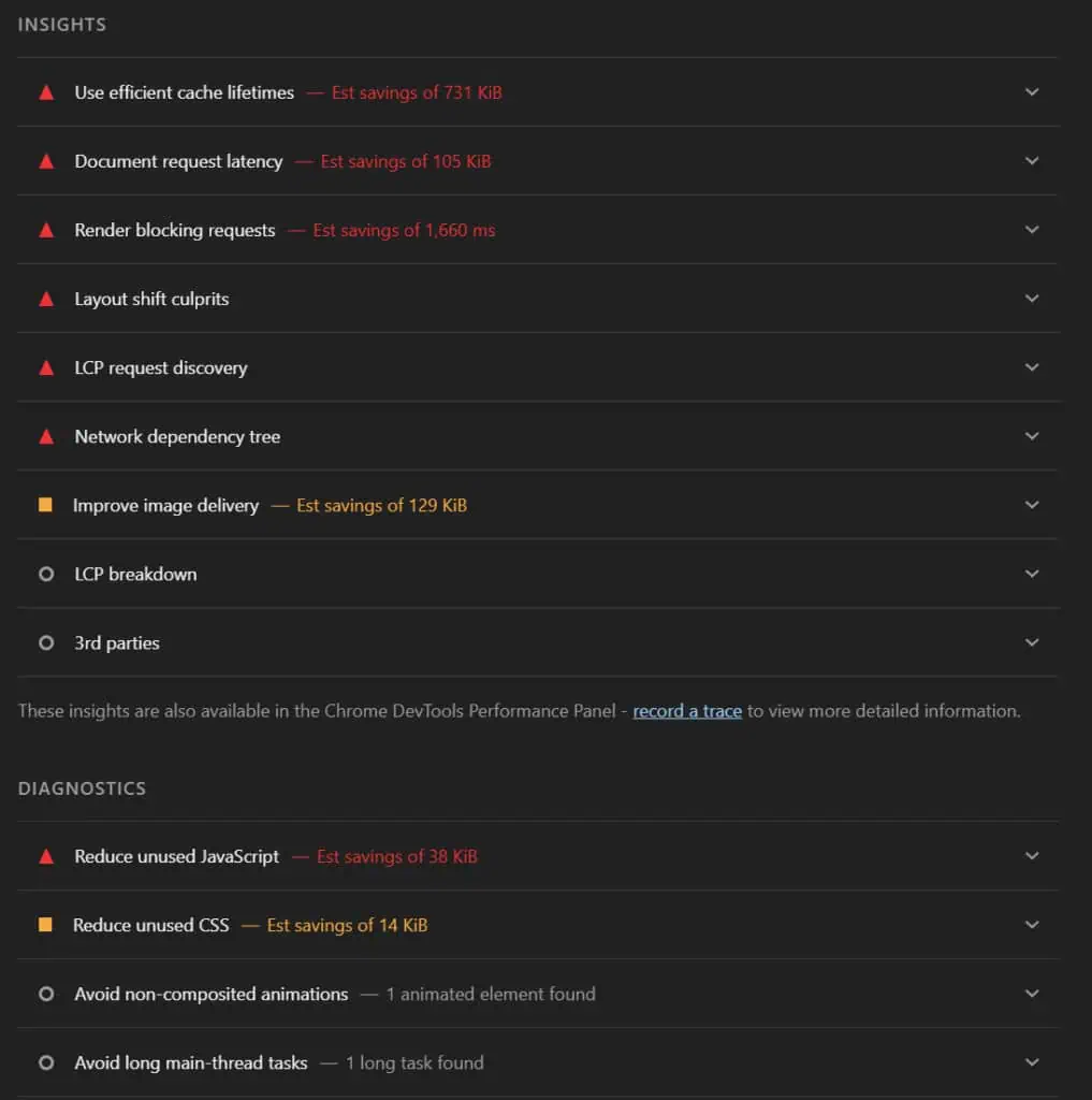 Result: Divi increases almost all Lighthouse metrics, especially the CLS. This was already a concern in previous versions, and it still appears to be a problem here. It is also concerning that Divi introduces a lot of unused JavaScript, which Lighthouse flags during the synthetic performance test.