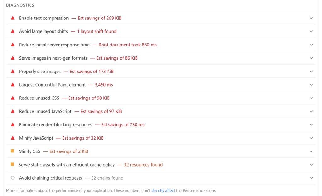 - PageSpeed Insights / Lighthouse results.