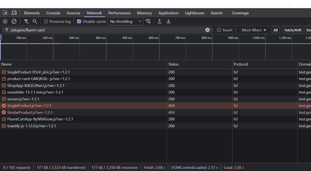 * Note: Two JS requests in FluentCart returned 404 errors.