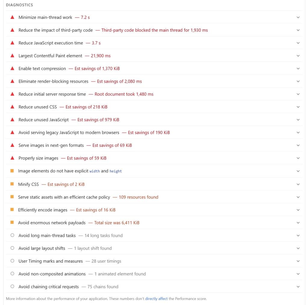 Honestly, WooCommerce’s results are disappointing considering how popular it is (powering over 8% of all websites in the whole world). The only Core Web Vital it keeps under control is the CLS, which FluentCart still needs to improve.