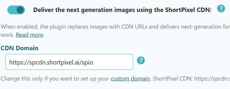 - Deliver the next generation images using the ShortPixel CDN: Disabled.